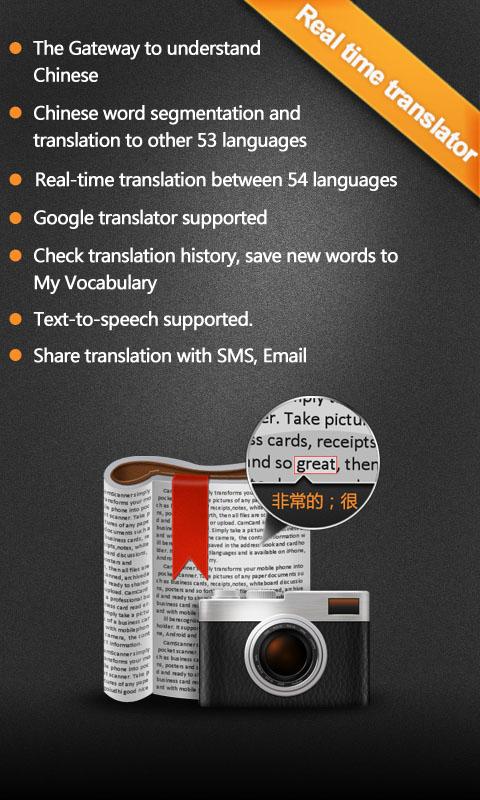 طبيق مميز جدا ، إذ يسمح لك بترجمة النصوص المكتوبة على الأوراق أو شيء من هذا القبيل باستعمال كاميرا هاتفك . يكفي أن تقوم بتوجيه الكاميرا إلى الكلمة المراد ترجمتها وسيقوم التطبيق بالترجمة الفورية لها ، طبعا التطبيق يقدم لك كذلك الترجمة بالشكل التقليدي ، ويدعم العديد من اللغات منها العربية